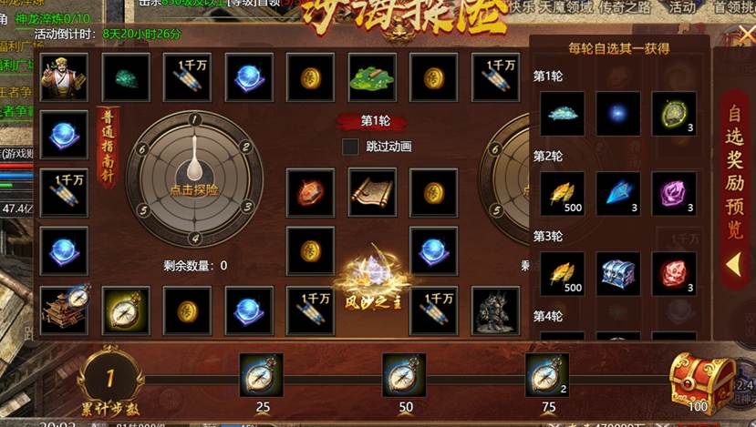 活动期间可消耗普通指针或冒险指针获得对应的行动步数,在地图上进行前进,可获得落点处的奖励,或触发落点处的事件。