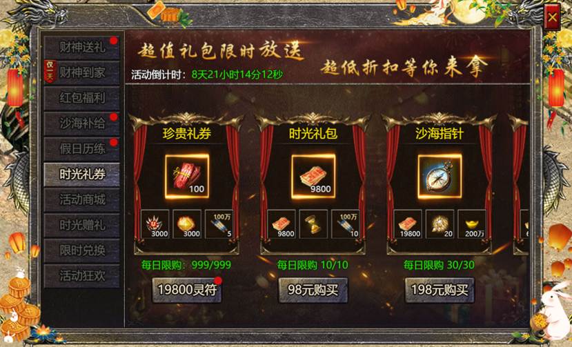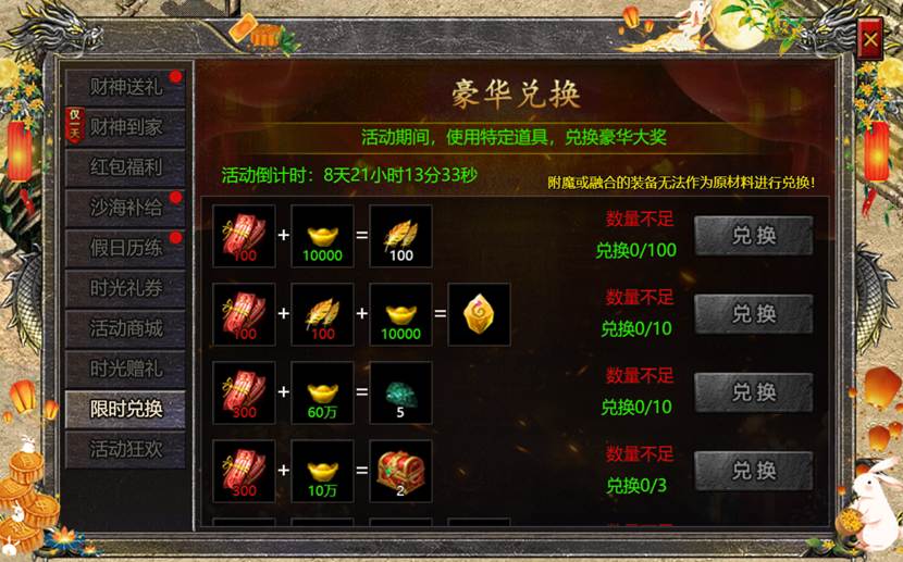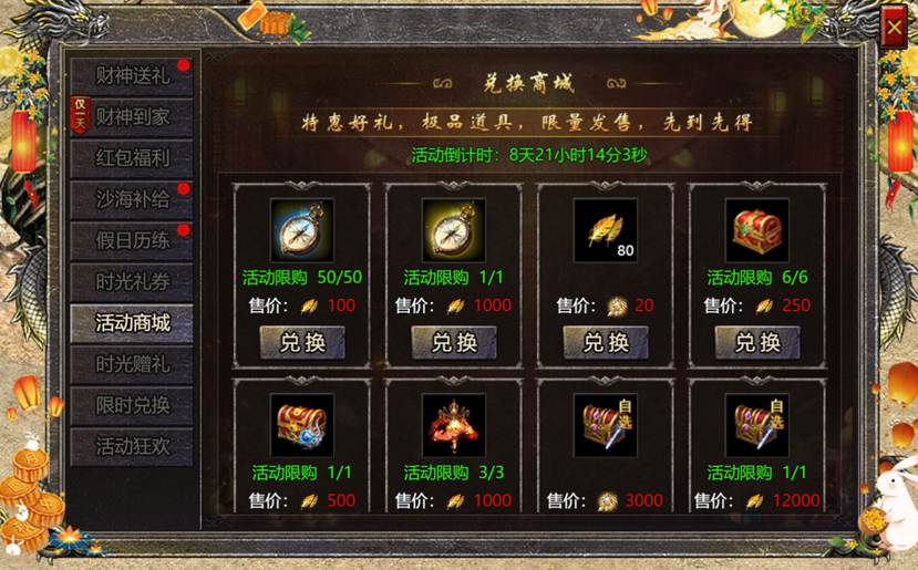 活动期间可消耗道具兑换其他奖励,内容随开服天数不同