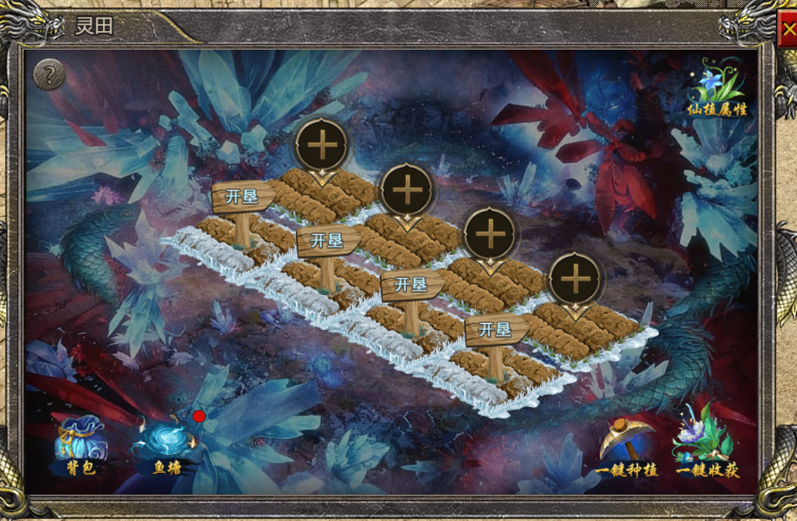 功能说明:开服121天鱼塘替换为休闲,天斗大陆新增灵种掉落,播种后一段时间可收获仙植,使用可获得基础属性提升